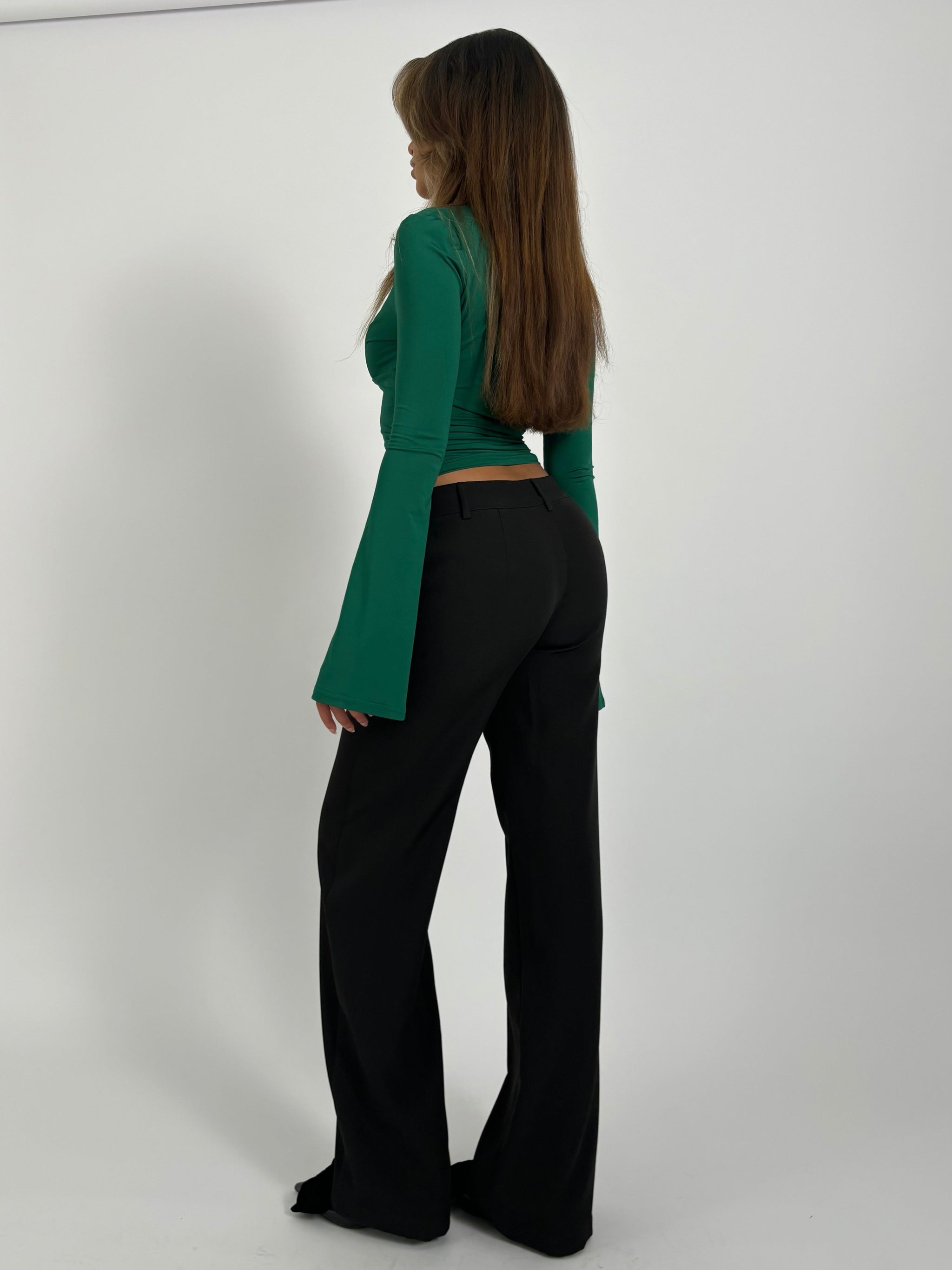 A gorgeous Maya Top crafted from a stretchy material that hugs your body beautifully, featuring delicate lace trim, long sleeves, and a flattering deep neckline.